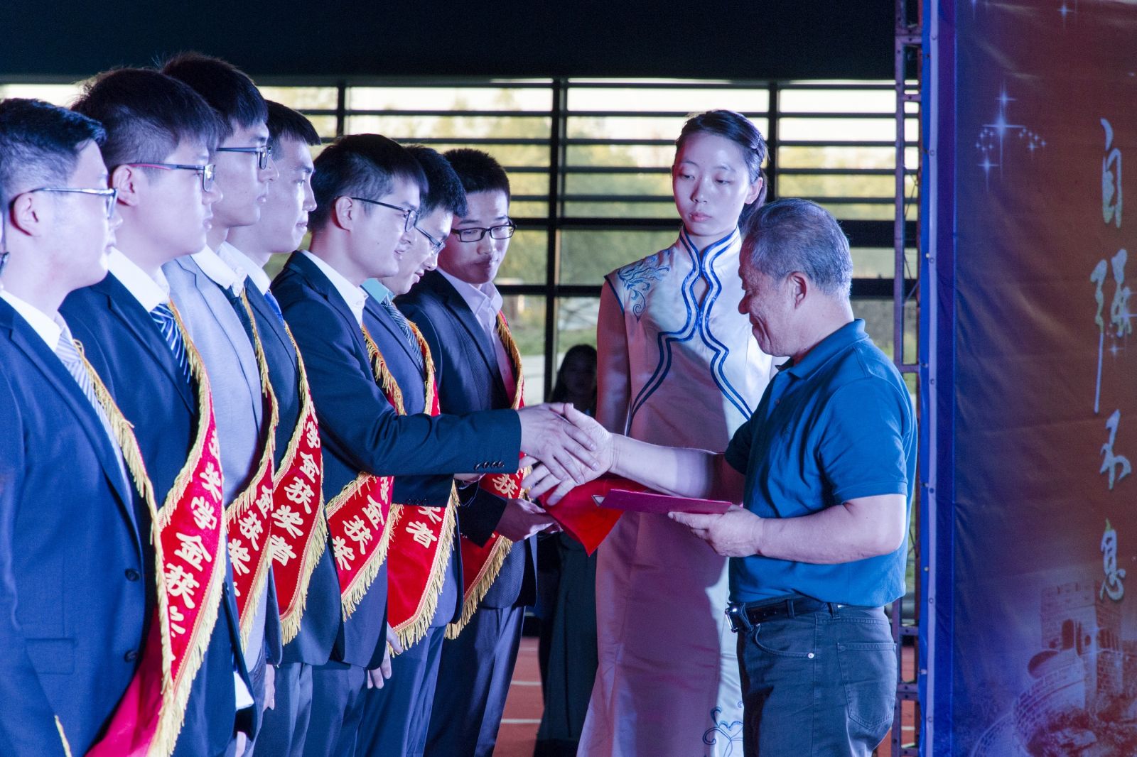 6月1日晚,東北大學軟件學院2015-2016學年學生獎勵基金頒獎典禮在東北大學渾南新校區(qū)風雨操場舉行。遼寧華鼎科技股份有限公司創(chuàng)始人黃剛、東北大學校長助理盛建龍、軟件學院院長王興偉、軟件學院黨委副書記兼副院長劉春風等學院相關領導人以及學生工作處、外聯(lián)處相關負責人參加,并為獲獎同學頒發(fā)證書。